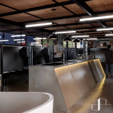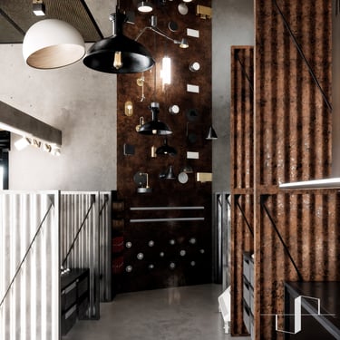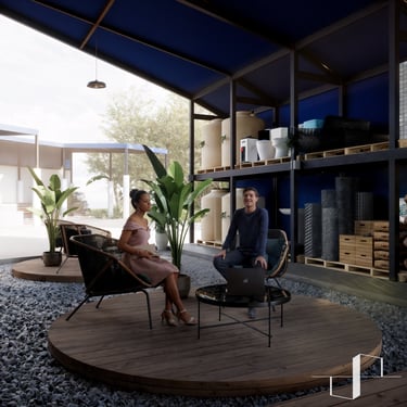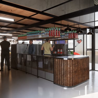 El estudio espacial permitió identificar áreas subutilizadas y materiales recuperables que se integraron creativamente al proyecto. Se diseñaron módulos de exhibición a medida que, además de cumplir una función práctica, consolidan la identidad visual del negocio mediante una estética robusta, durable y de bajo mantenimiento. Esta estrategia reduce la necesidad de mobiliario nuevo y refuerza el enfoque sostenible del proyecto.